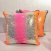 Bring a vibrant burst of color to your living space with our Sunset Splash Sequin Cushion Covers. These eye-catching covers feature a dynamic blend of pink, orange, and gold tones that evoke the warm hues of a spectacular sunset. The sequin design creates a shimmering, iridescent effect that changes as you brush your hand across the surface, adding an interactive element to your decor.