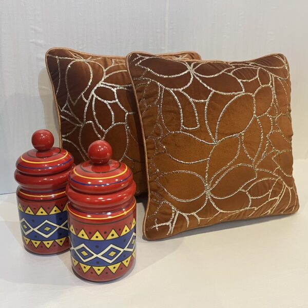 Experience the perfect blend of sophistication and comfort with our Velvet Elegance Cushions. Each cushion is crafted from sumptuous brown velvet that promises to add a touch of opulence to any room. The elegant design is accentuated by swirling patterns created with shimmering silver threads, offering both tactile and visual pleasure. Measuring at a generous size, these cushions provide plush support as you relax, making them an ideal addition to your living space or bedroom. Elevate your home decor with these exquisite statement pieces that effortlessly combine style with coziness.